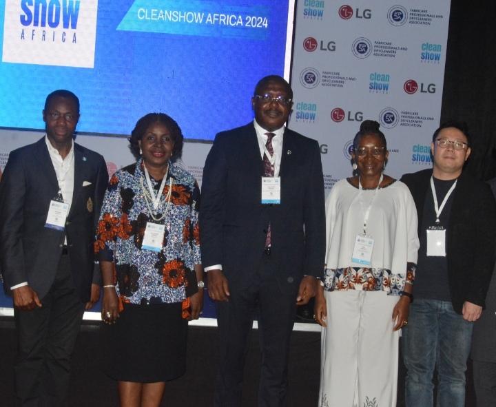 Photo caption L-R: Eniibukun Adebayo, chairman, Fabricare Professionals and Drycleaners Association Chinyere Almona, director general, Lagos Chamber of Commerce and Industry ( LCCI); Emeka Obegolu, president , Abuja Chamber of Commerce and Industry; Nnoli Akpedeye, managing director/CEO, Perfect Laundi Limited , and Brian Kang, general manager, home appliances, Life is Good (LG) at the Cleanshow Africa 2024 Exhibition and Conference , ”Positioning Africa’s Fabricare and Hygiene Industry for Excellence” in Lagos on Tuesday.